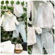 Περιλαμβάνει πουκαμίσα, παντελόνι, τιράντες, φουλάρι και καβουράκι ψάθινο. Λευκή πουκαμίσα ανάλαφρη καλοκαιρινή που συνδυάζεται με παντελόνι λινό σε μέντα με συνδυαστές τιράντες. Συνοδεύεται από ψάθινο καβουράκι και φουλάρι.