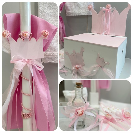 Ιδιαίτερο χειροποίητο σετ βάπτισης με κορώνα.
