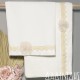Λαδόπανα σε εκρού χρώμα με δαντέλα μπεζ και λουλούδι στο κέντρο.