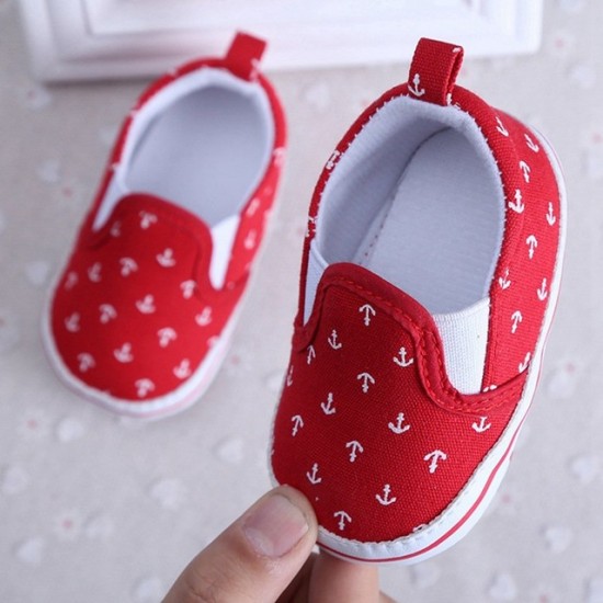 Παπουτσάκι βρεφικό εσπαντρίγια με άγκυρες κόκκινο ΠΑΑ609
